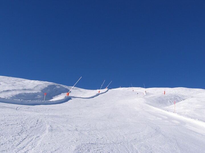 Blick zurück. Links durch die Rinne führt die Variante. Rote Abfahrt 1 (Schnapfenwald)