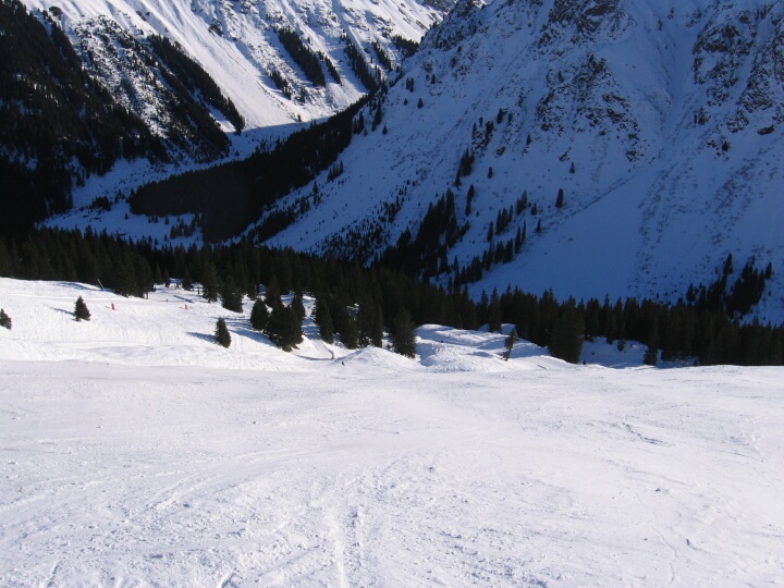Links sieht man die rote Abfahrt 1. Schwarze Abfahrt 1a (Lange Seite)