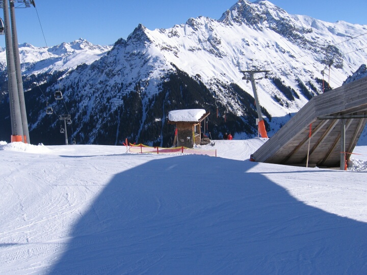 Blick zum Aussteig aus dem 2-SL Schlüachteck (H). Links die 8-EUB Schafberg (A). Bergstation DSB Schafberg II (B)