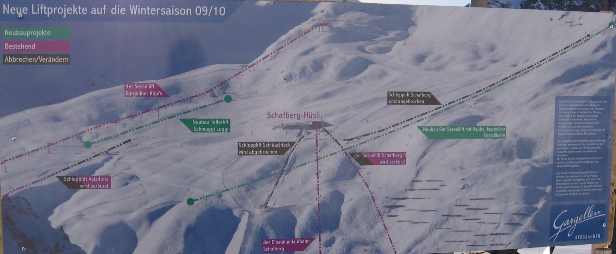 Die Skigebietstour Gargellen besteht insgesamt aus 233 Bildern die alle vom 12. und 16. Januar 2009 stammen. Das letzte Update der Tour war am 14.02.2009. Hier noch aufgelistet die Lifte und Pisten, welche nicht in der Tour enthalten sind: