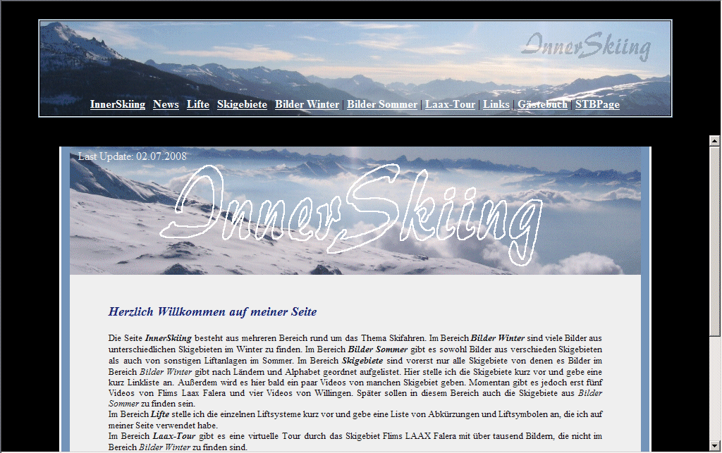 Die neue Seite SkiAktiv mit der neuen Adresse www.skiaktiv.de.vu ersetzt die bisherige Seite InnerSkiing. (Sie ist aber auch weiterhin über die Adressen www.innerskiing.de.vu und www.stbskipage.de.vu erreichbar.)