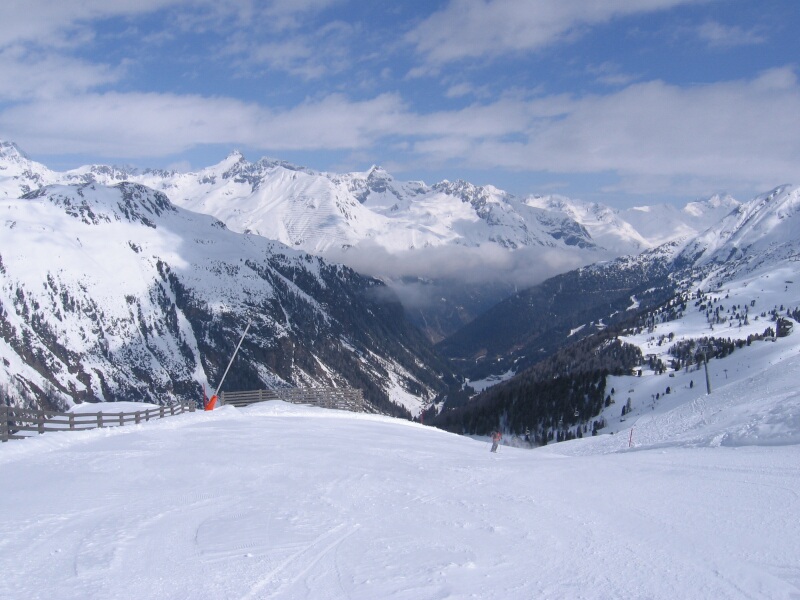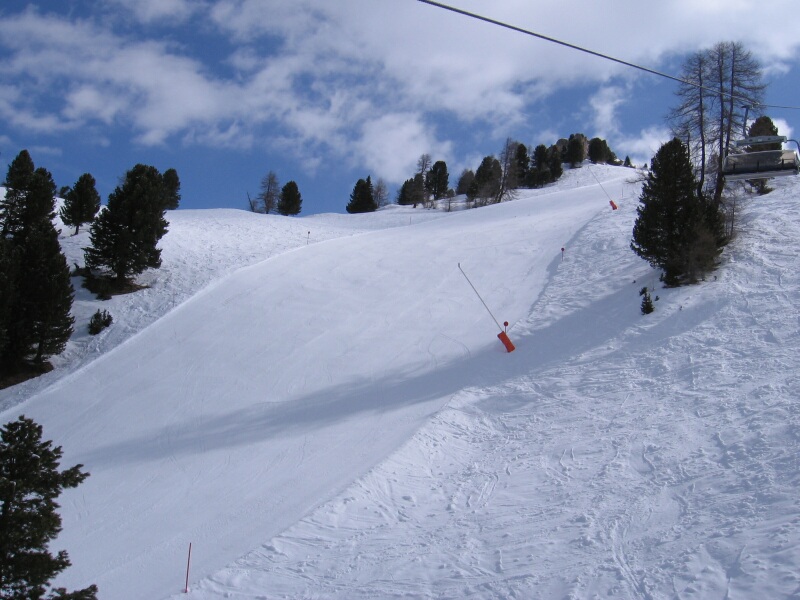 Rote Abfahrt 34 mit Blick auf Paznauer Taya