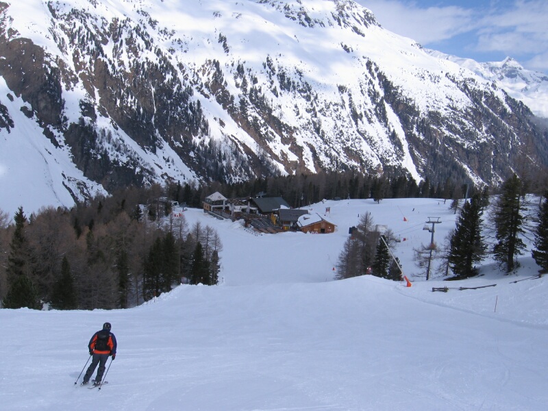 Rote Abfahrt 36 mit Blick zur Talstation 4-SB Bodenalpbahn
