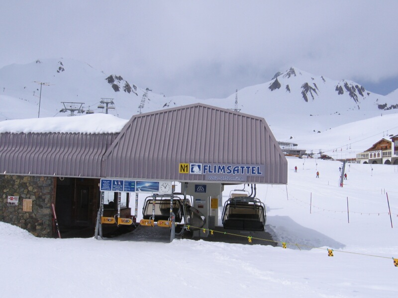 Blick zu den Talstationen 4-KSB/B Flimsattelbahn und 6-KSB/B Viderjochbahn I