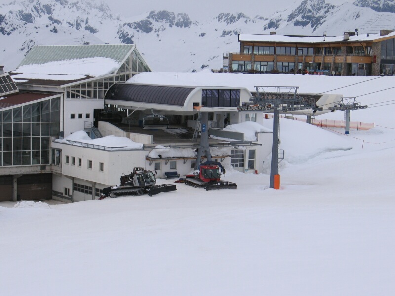 Blick zur Bergstation 6-KSB/B Gratbahn und dem Pardorama