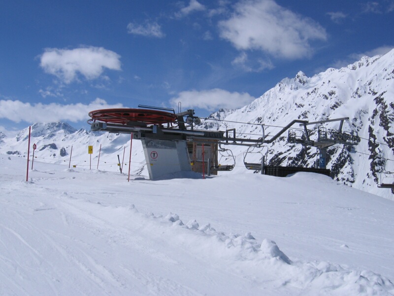 Blick Richtung Greitspitz mit Bergstation 6-KSB/B Gratbahn im Vordergrund