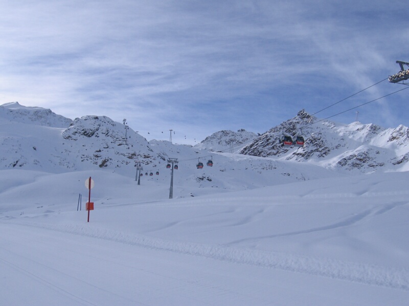 Oberster Teil der roten Abfahrt 36 mit Resten des alten 2-SL Mittelbergjoch II