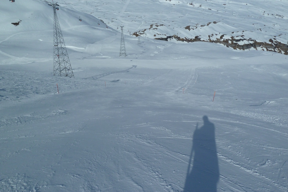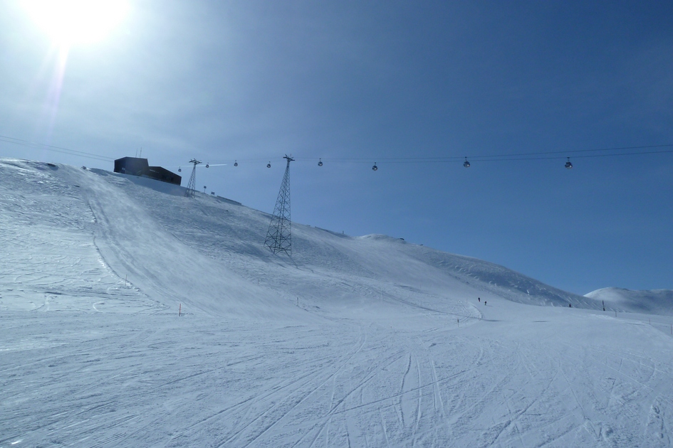 Blaue Abfahrt 43 mit Blick zur Gondelbahn Vorab. Von links kommt die schwarze Abfahrt 41.