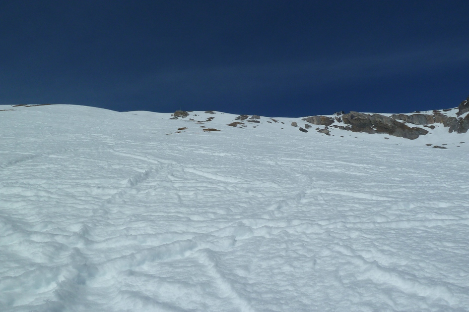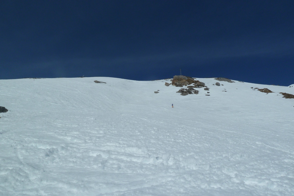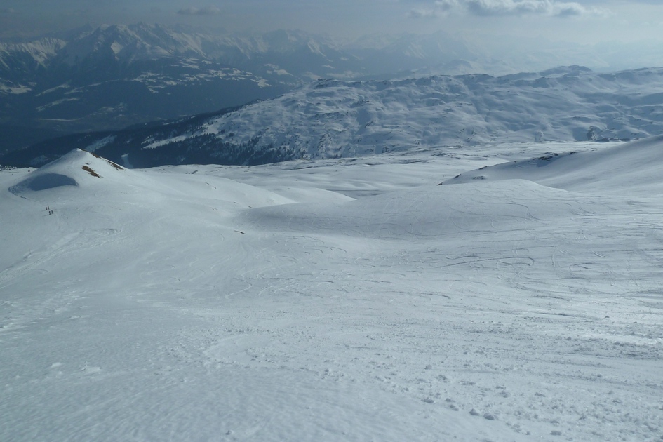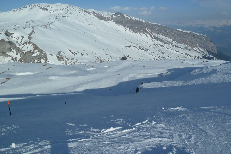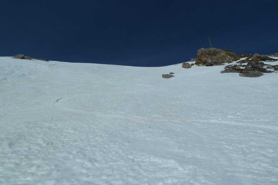 Oberster Steilhang der Skiroute 70. Dieser wird bei einem Neubau der Cassonsbahn mit Bergstation bei Ils Cugns nicht mehr erschlossen sein. Sehr schade.