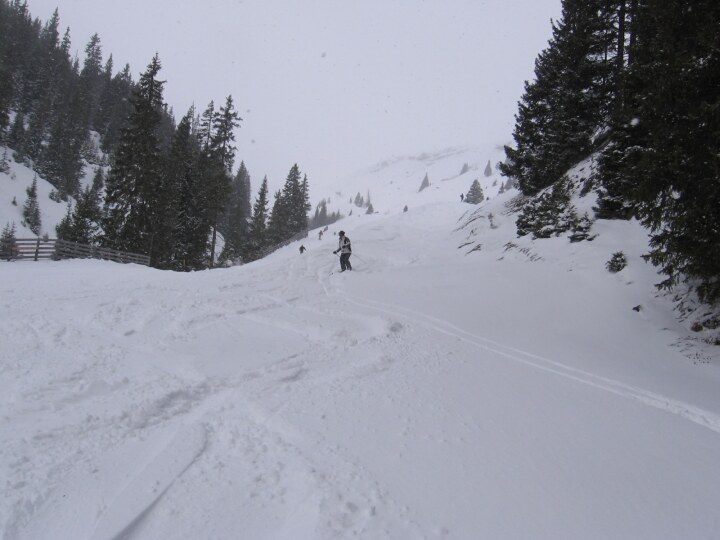 Schwarzen Abfahrt 25 (Sogn Martin), Blick zurück, Von links-geradeaus kommt die rote 40 von rechts-geradeaus die schwarze 25