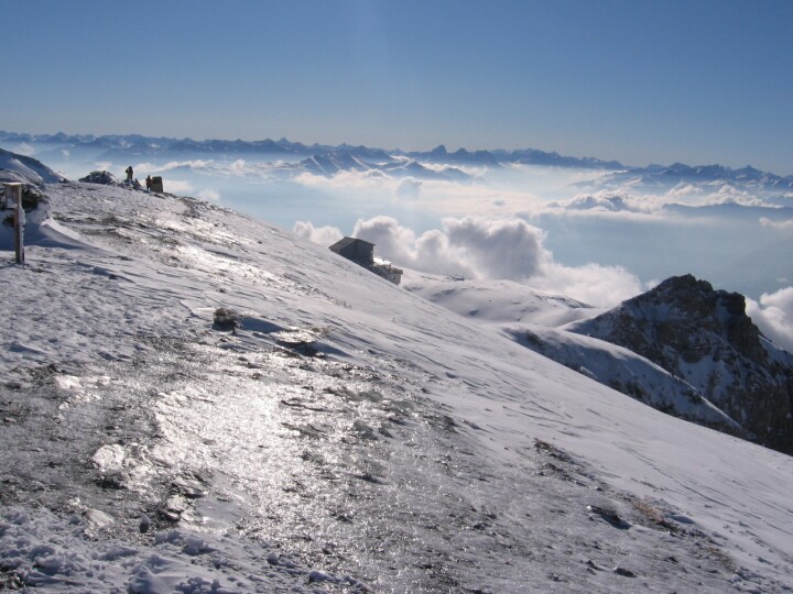 Weg zu den Abfahrtsrouten 70 und 71, Blick zurück zur Bergstation Cassons
