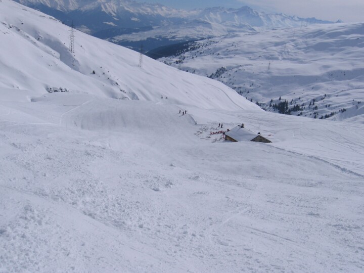 Schwarze Sattelabfahrt (35), Schneebar an der 35, im Pistenplan ist diese zu tief eingezeichnet, es dauert noch ein Stück bis man am Lift ist.