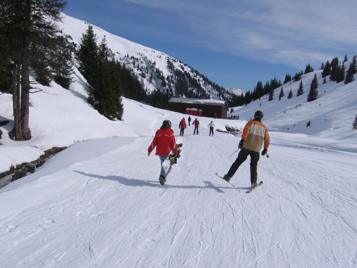 Schwarze Sattelabfahrt (35), Ziehweg fast geschafft - Blick zur Talstation der DSB Alp Ruschein