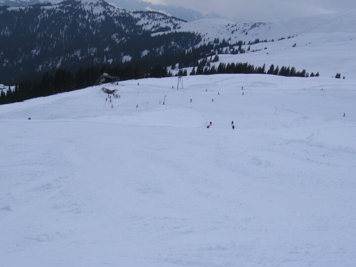 Umfahrung blaue Abfahrt 52 (Alp Dado), Blick zur Talstation des 2-SL Alp Dado