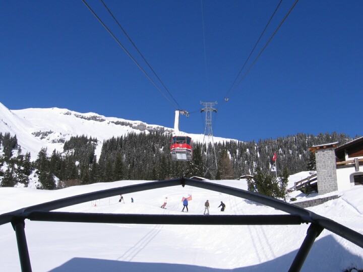 Startgels: In der Talstation der 80-PB Grauberg: Rote Kabine fährt grade weg