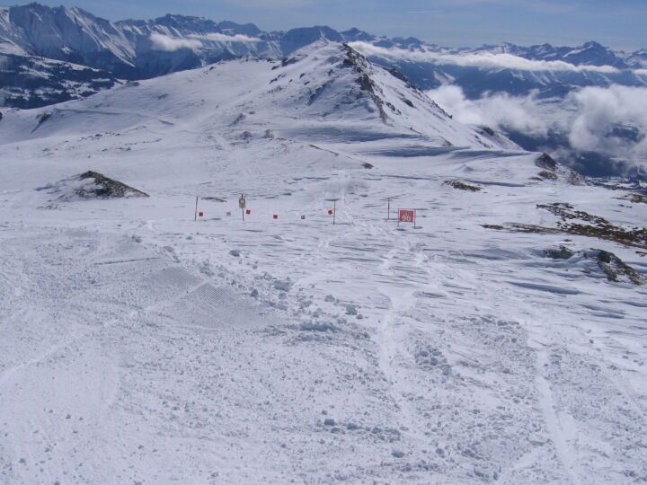 Start der roten Talabfahrt 90 nach Ruschein/Ladir [!Sackgasse!], Diese ist leider gesperrt