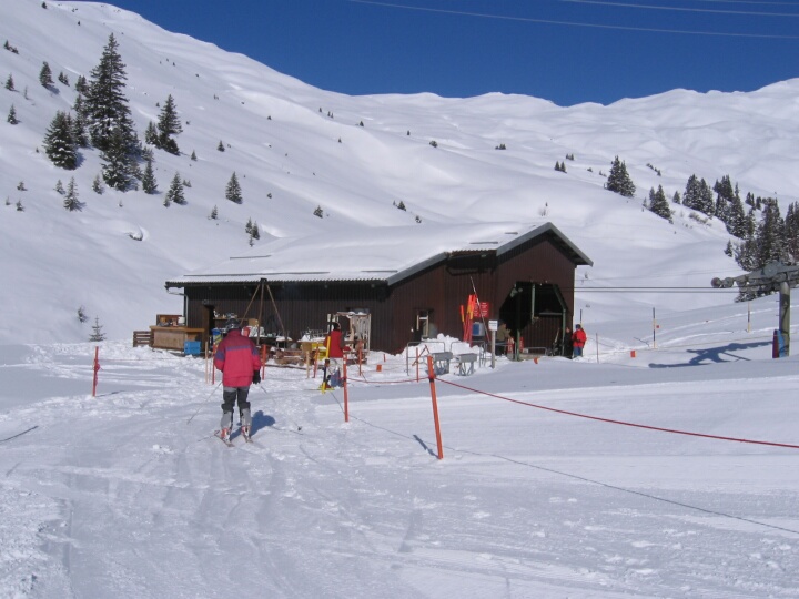 Talstation der DSB Alp Ruschein: Baujahr: 1974, Hersteller: Städeli. An der Talstation gibt es eine Schneebar, wo es u.a. sehr leckere Bratwürstchen vom Grill gibt