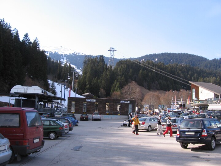 Larnags mit der roten Talabfahrt 60 darunter und rechts die