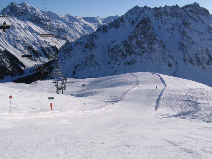 Abzweig der Skiroute 12. Links die 4-SB Gargellner Köpfe (C). Rote Abfahrt 1 (Schnapfenwald)