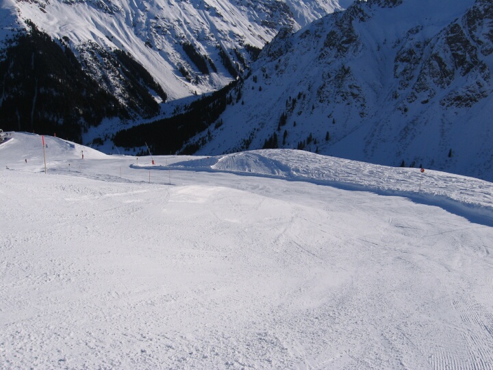 Unten sieht man schon die Kreuzung mit der blauen Abfahrt 2. Rote Abfahrt 1 (Schnapfenwald)