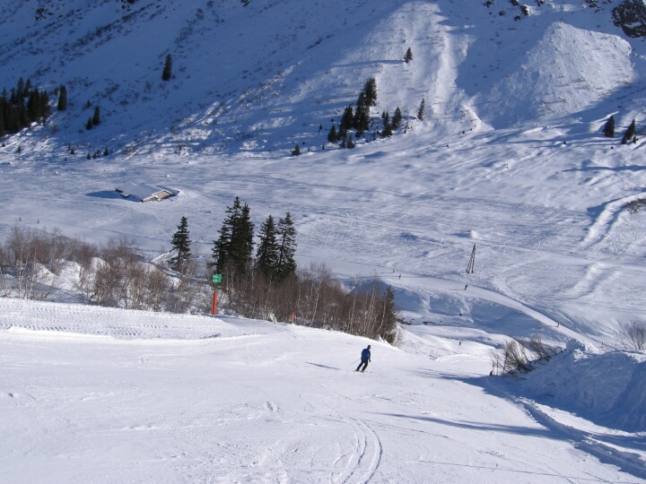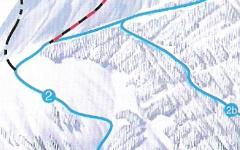 Abzweig der blauen Piste 2b (Forststraße) (nicht in der Tour enthalten). Weiter unten sieht man den weiteren Verlauf der blauen Abfahrt 2. Blaue Abfahrt 2 (Birkenegg)