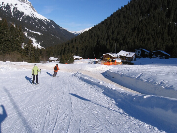 Rechts sieht man schon den 1-SL Vergalden Übungslift (F).