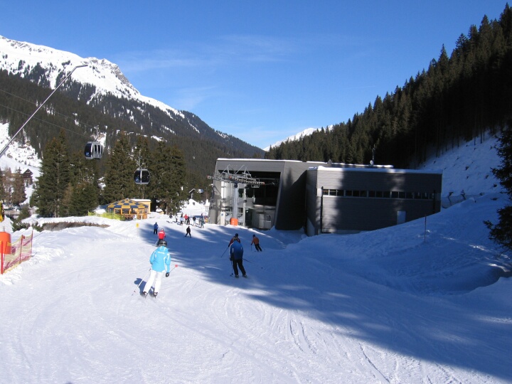 Blick zur Talstation der 8-EUB Schafberg (A). Blaue Abfahrt 2 (Birkenegg)