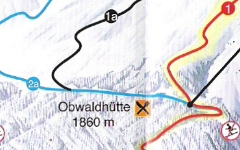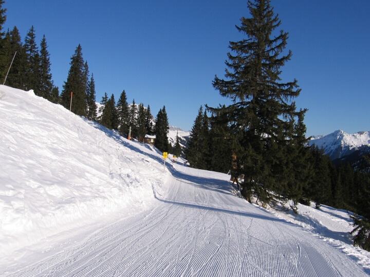 Die Talstation des 2-SL Valzifenz ist schon zu sehen. Blaue Abfahrt 2a (Verbindung Schnapfenwald)