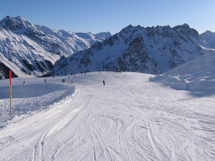 Abzweig der roten Abfahrt 1. Blaue Abfahrt 5 (Gargellener Köpfe)