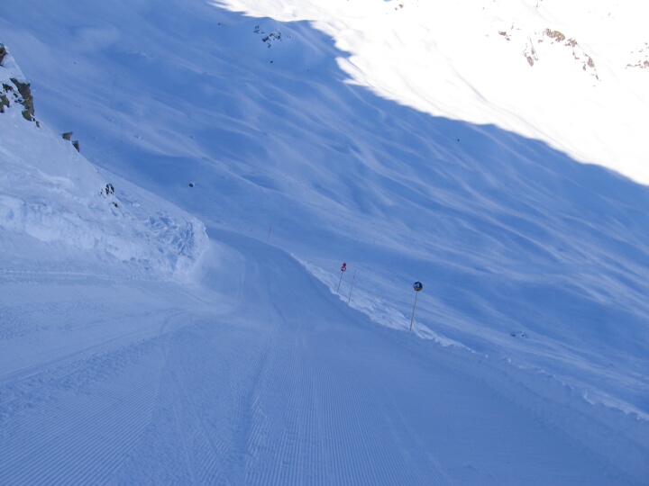 Abzweig der Skiroute 13. Blaue Abfahrt 6 (Täli)