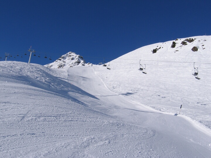Blick zurück mit DSB Schafberg II (B). Blaue Abfahrt 9a