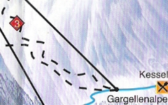 Unten der untere, präparierte Teil der Skirouten 3 und 10. Links die 8-EUB Schafberg (A). DSB Schafberg II (B)