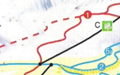 Über der blauen Abfahrt 2 mit Blick zur blauen Abfahrt 5a. Rechts sieht man die Bergstation des 2-SL Valzifenz (G). 4-SB Gargellner Köpfe