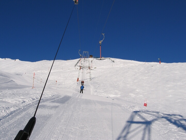 Kurz vor der Kreuzung mit der blauen Abfahrt 9a, welche nicht im Pistenplan eingezeichnet ist. 2-SL Schafberg