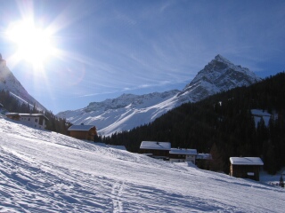 Aussicht aus dem 1-SL Vergalden Übungslift Richtung Madrisa (2770 m).
