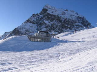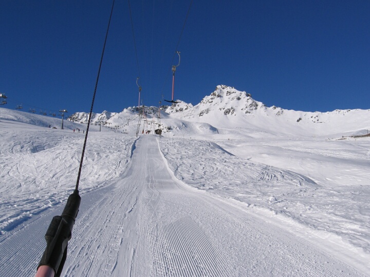 Blick aus dem 2-SL Valzifenz (G) zur Talstation der 4-SB Gargellner Köpfe (C).