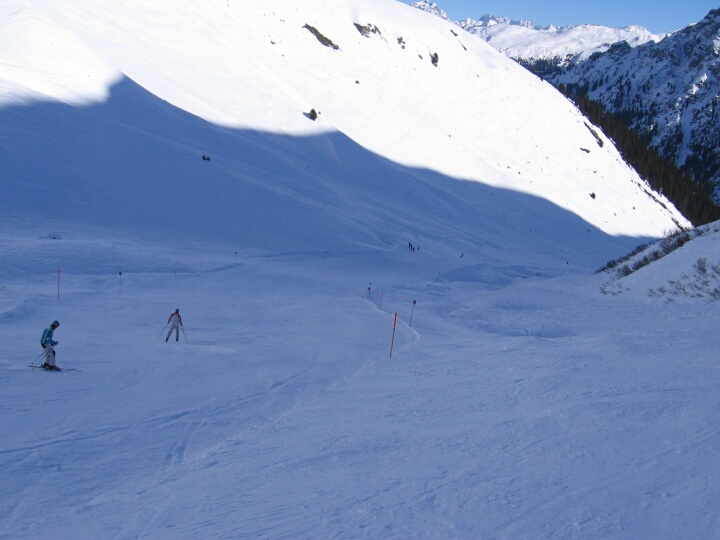 Die Skiroute 13 führt wieder auf die blaue Abfahrt 6 (Täli). Skiroute 13 (Rinderhütte)