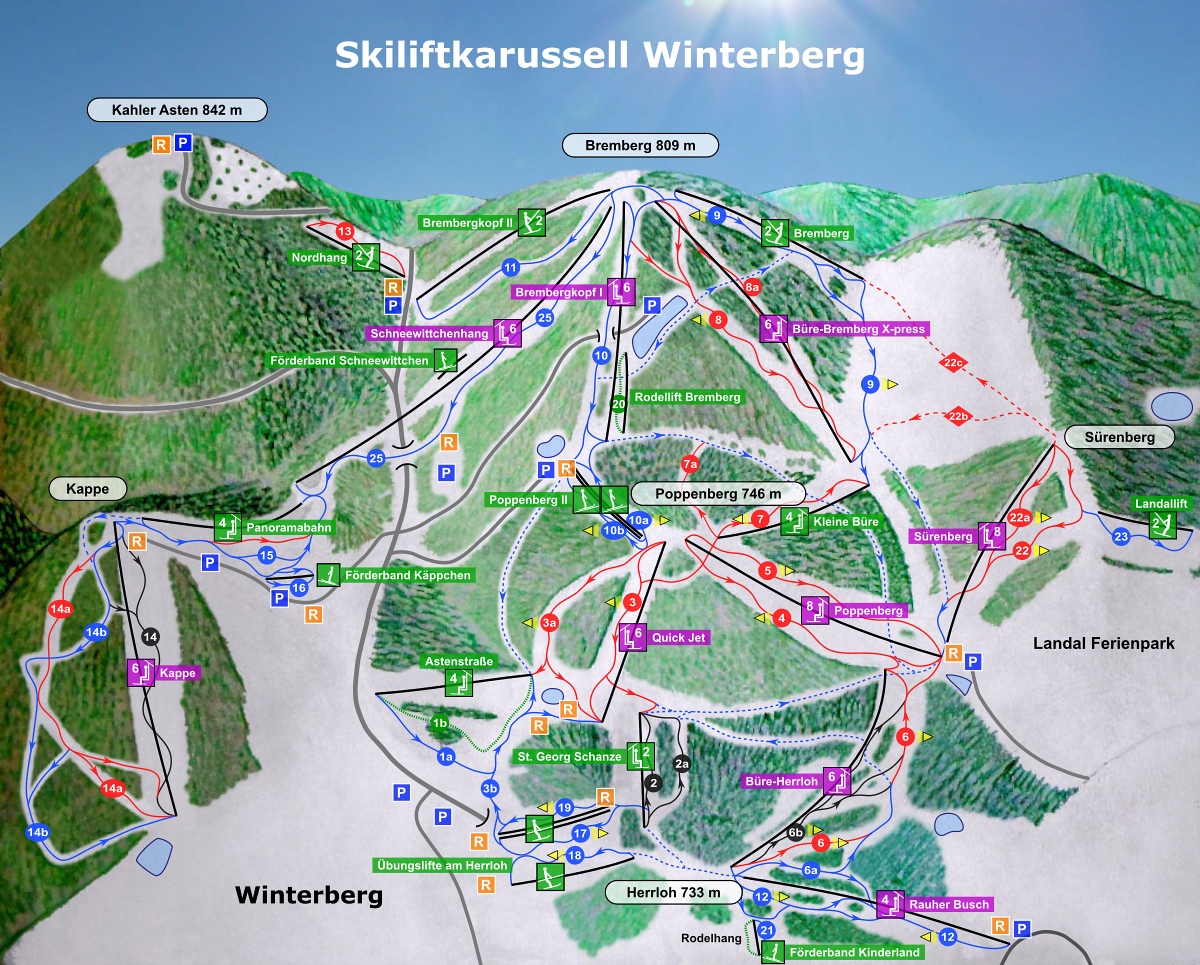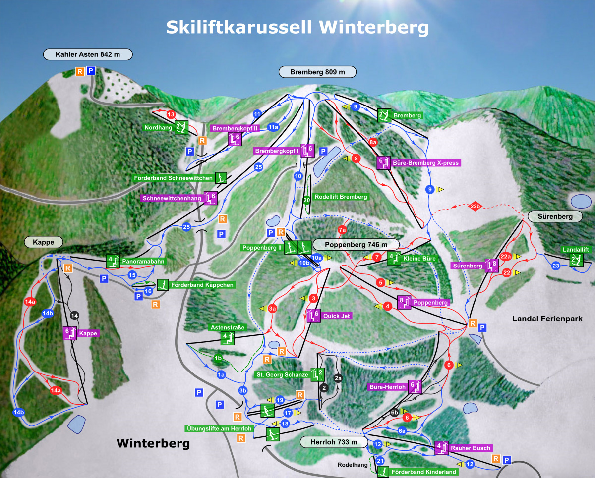 Zusätzlich zu den 17 Liften gibt es noch 1 Rodellift (Bremberg), 3 Seillifte (Übungslifte Herrloh) und mehrere Förderbänder (2x Poppenberg II, Käppchen, Kinderland, Schneewittchen)