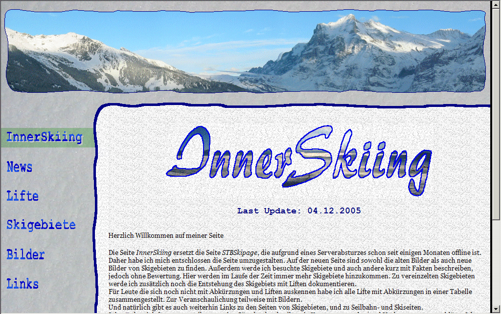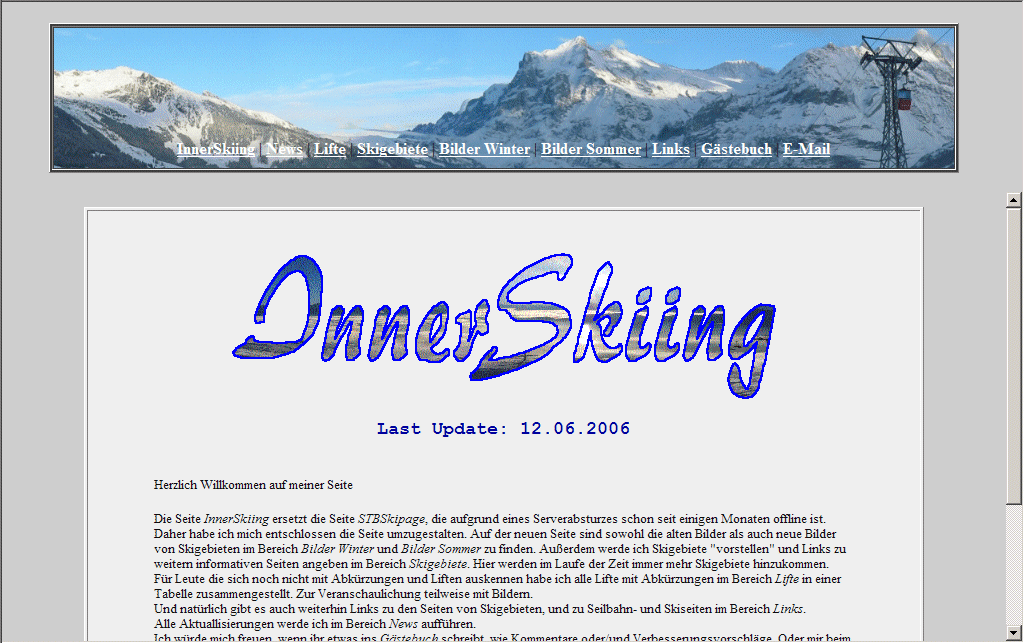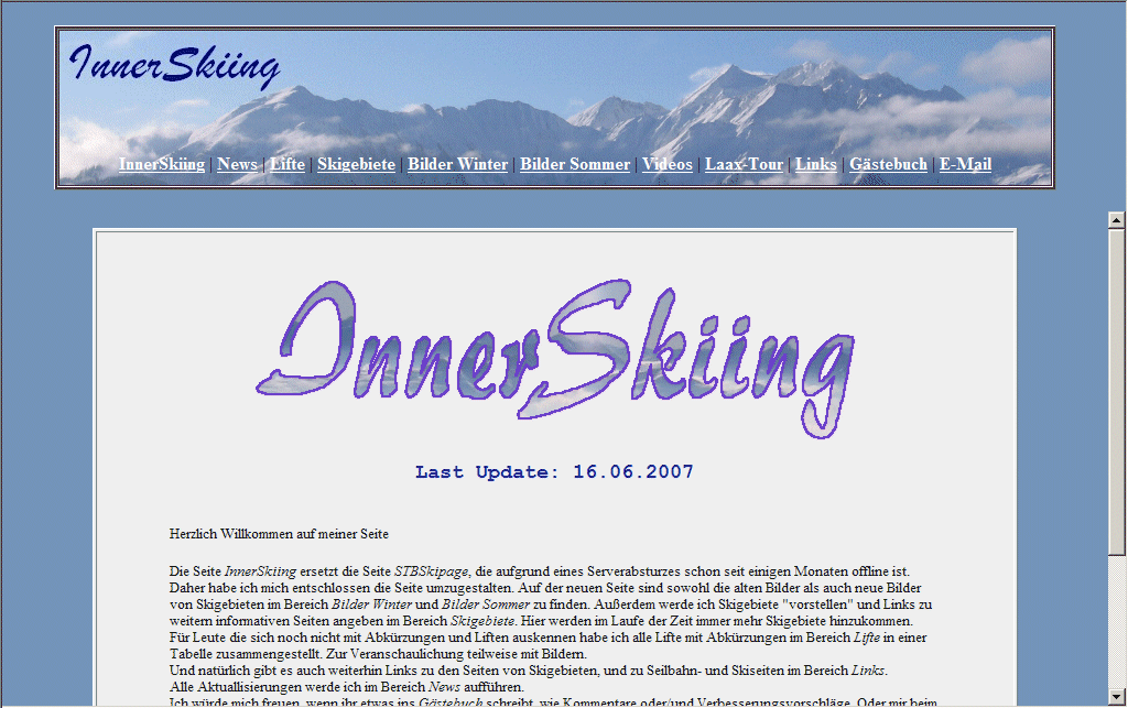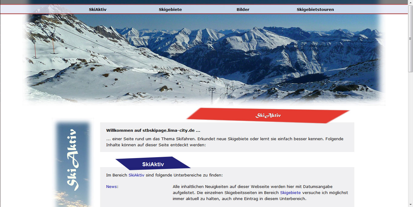 Die neue Seite SkiAktiv mit der neuen Adresse www.skiaktiv.de.vu ersetzt die bisherige Seite InnerSkiing. (Sie ist aber auch weiterhin über die Adressen www.innerskiing.de.vu und www.stbskipage.de.vu erreichbar.)