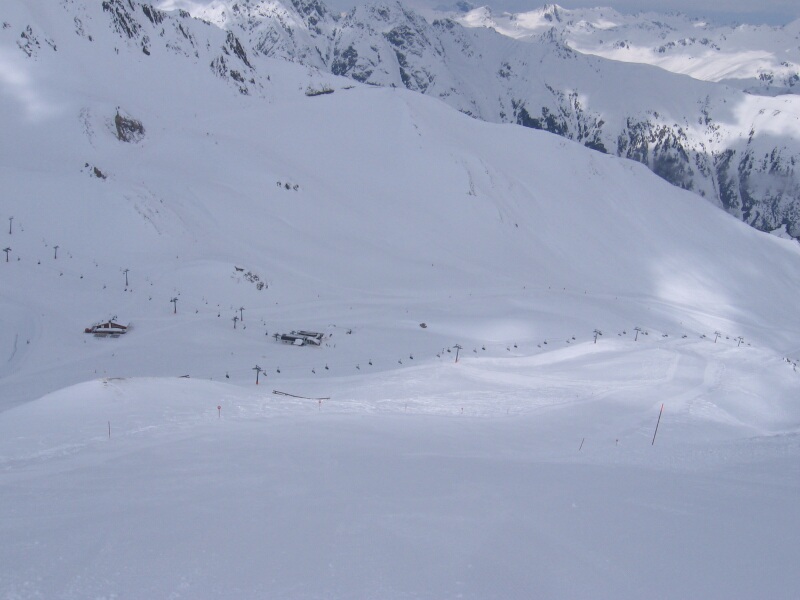 Blick ins Tal, durch das die rote Abfahrt 80 führt