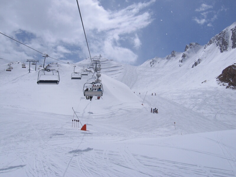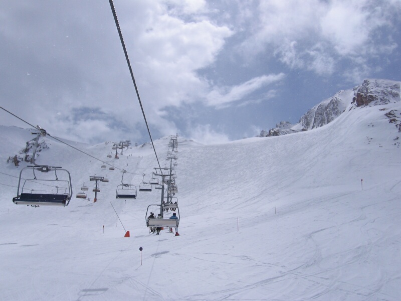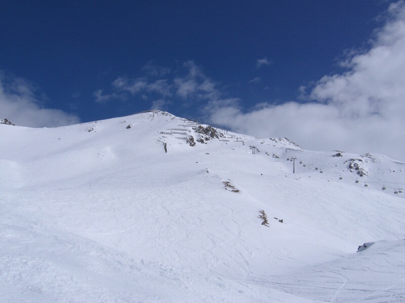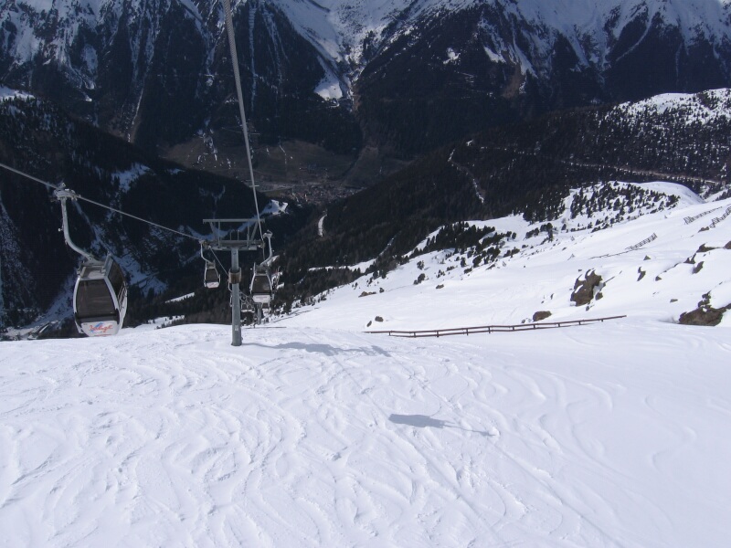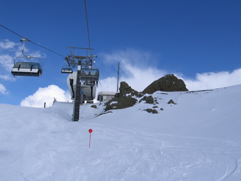 Blick zum Pardorama aus der 6-KSB/B Gratbahn mit blauer Abfahrt 6 unten