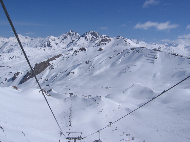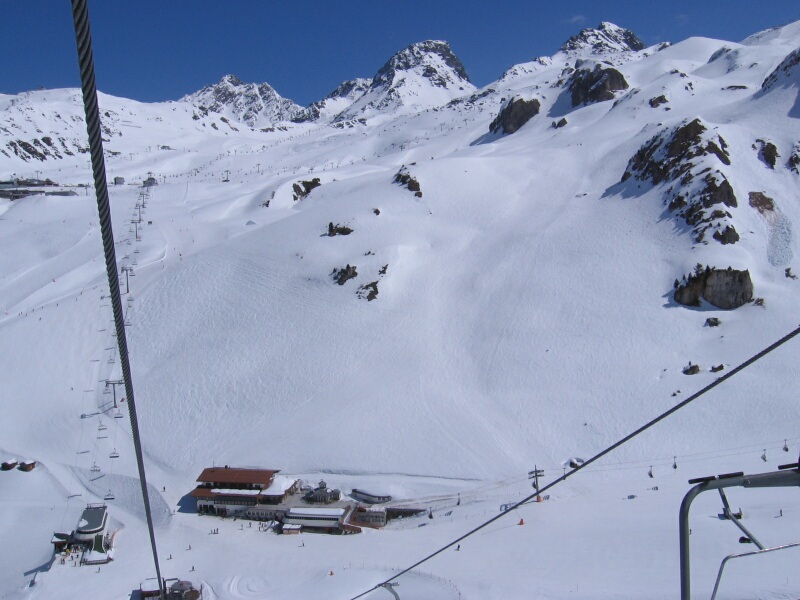 Blick Richtung Greitspitz mit Bergstation 6-KSB/B Gratbahn im Vordergrund