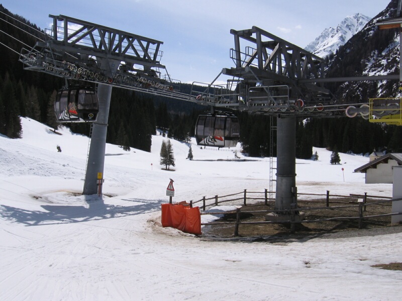 Blick zurück zur Bergstation 4-EUB Pardatschgratbahn von der schwarzen 4