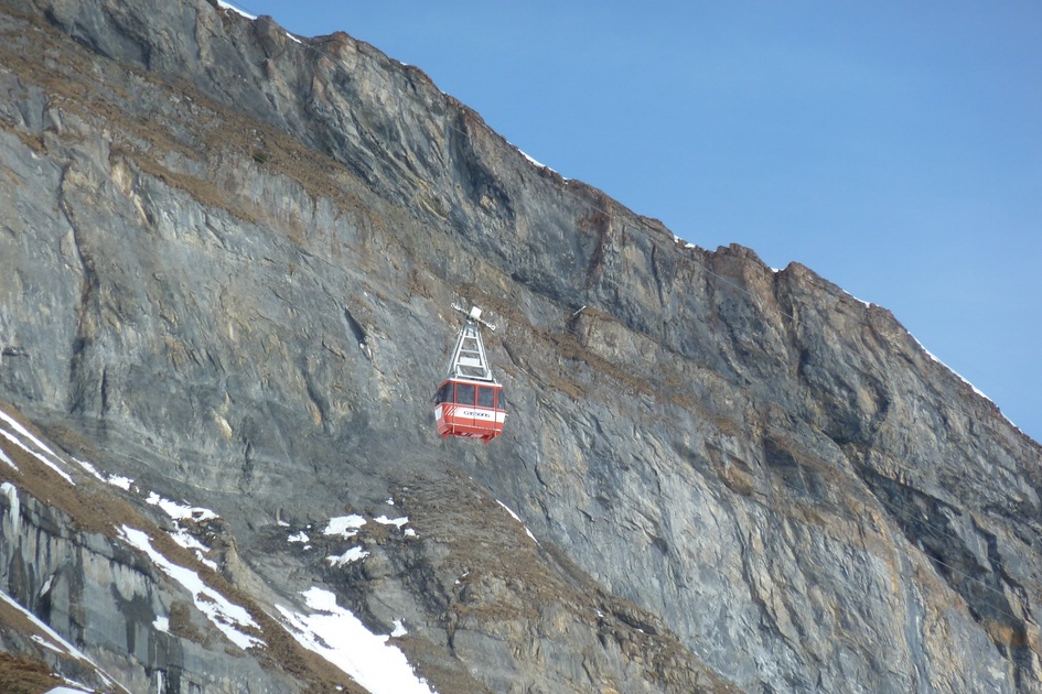 Zoom Kabine der Cassonsbahn vor der Felswand