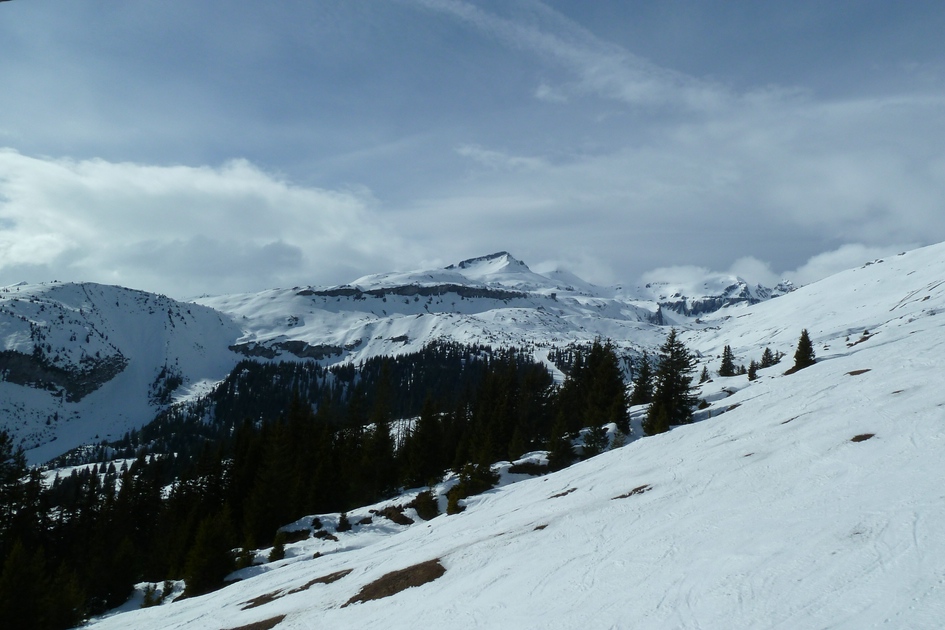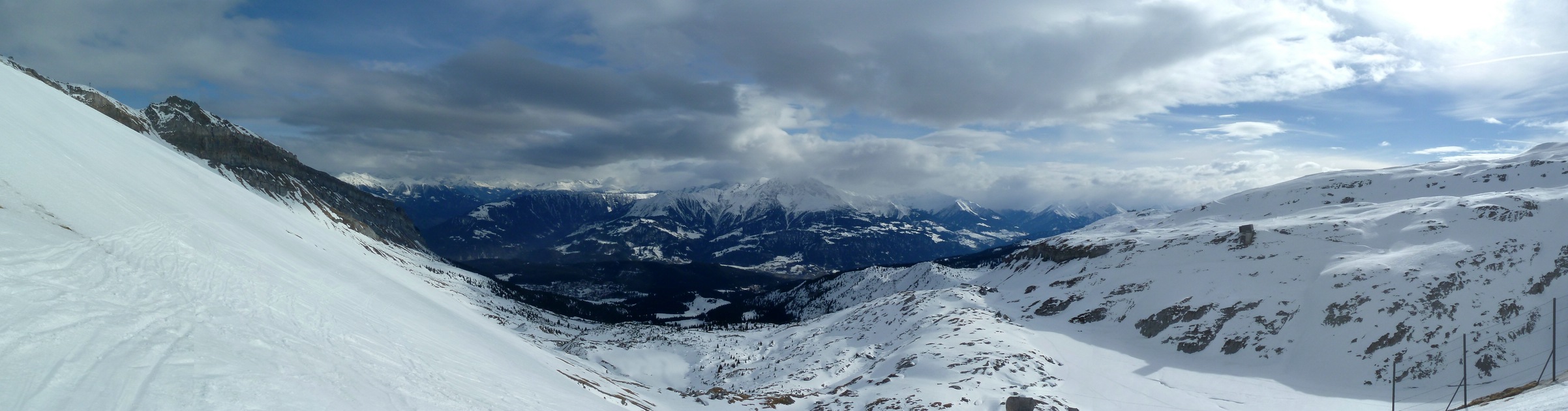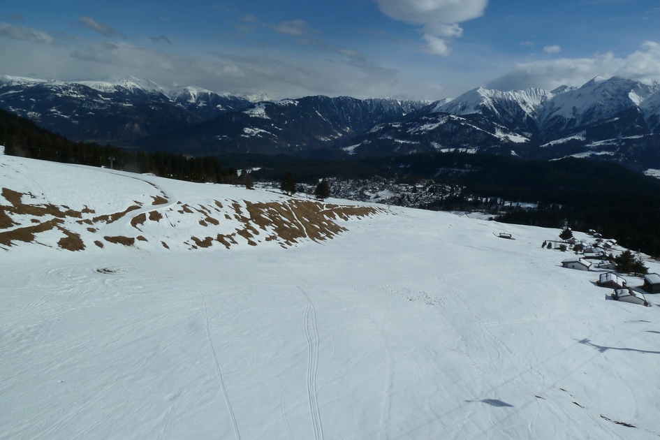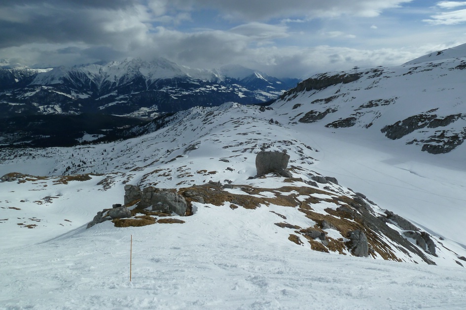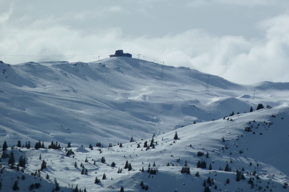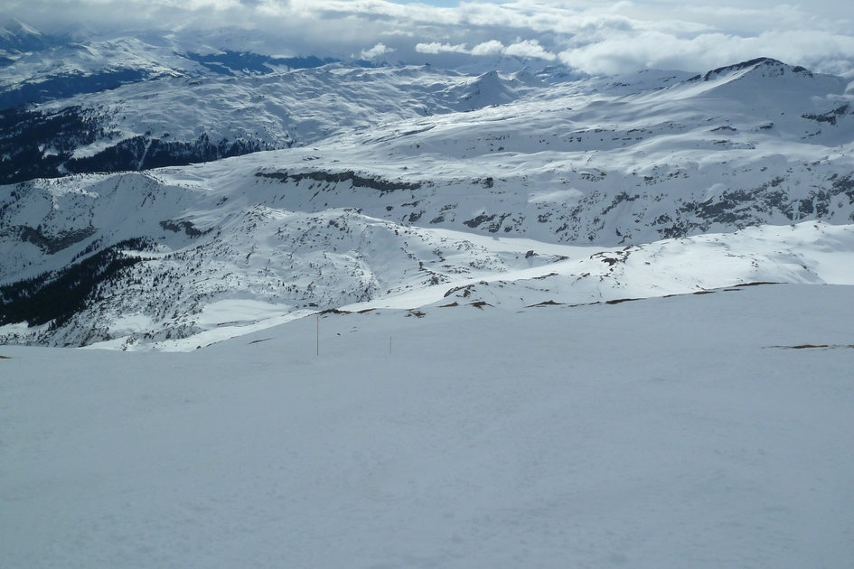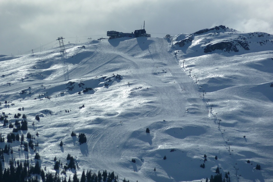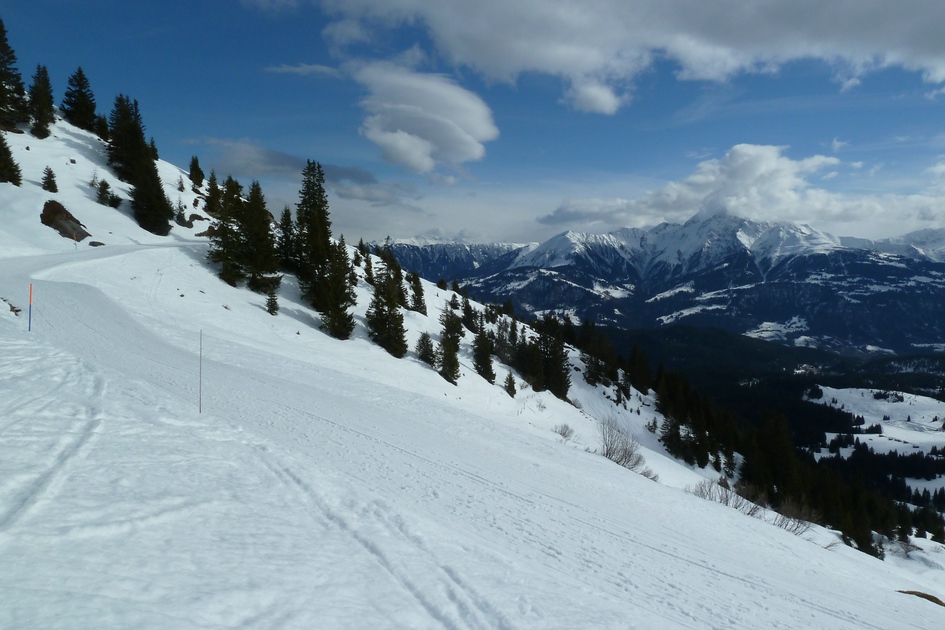 Skiroute 71 - Ganz links die die Bergstation Cassons zu sehen, in der rechten Bildhälfte sieht man die Bergstation Grauberg.