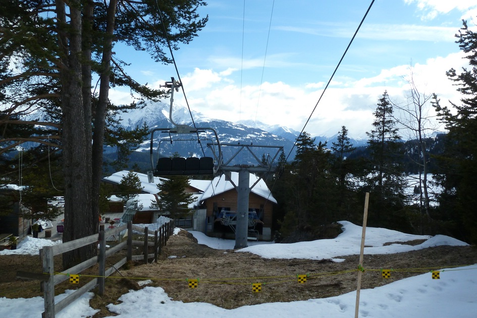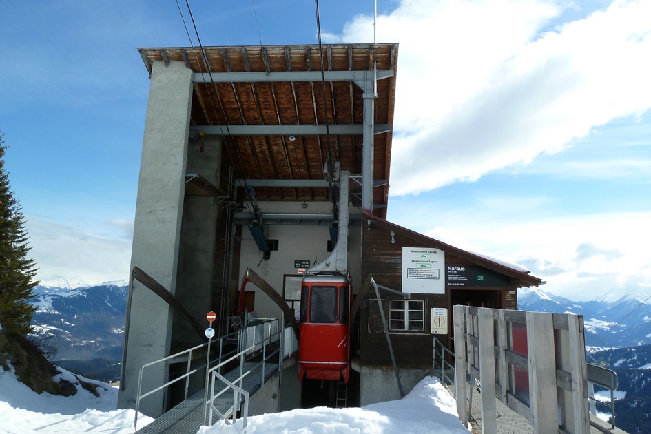 Blick zur Station Naraus mit Talstation der Cassonsbahn aus der Sesselbahn Naraus.