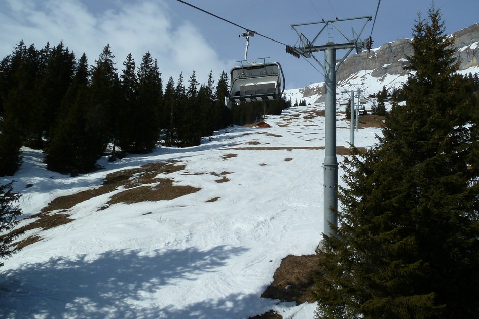 Blick aus der Sesselbahn Naraus Richtung Graubergbahn