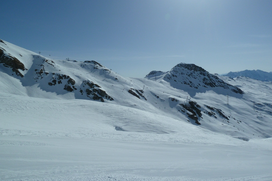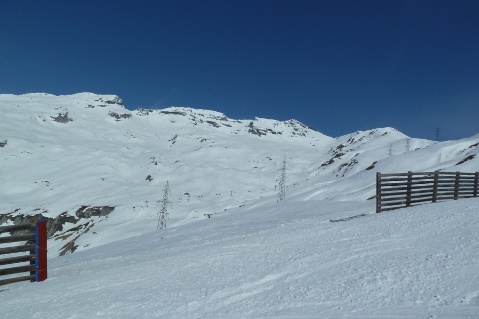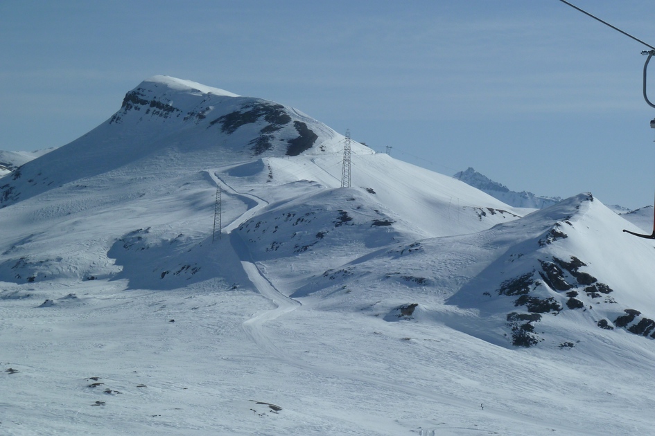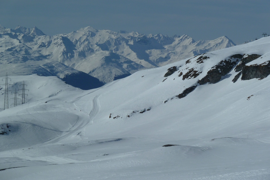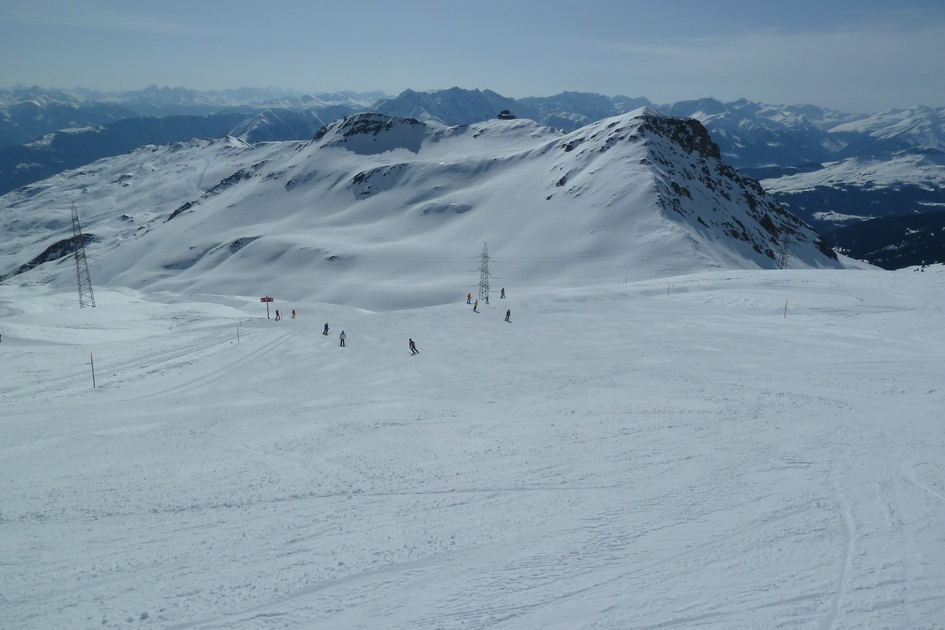 Blick aus der Vorabbahn zum Vorab Pign und der Skiroute 77.