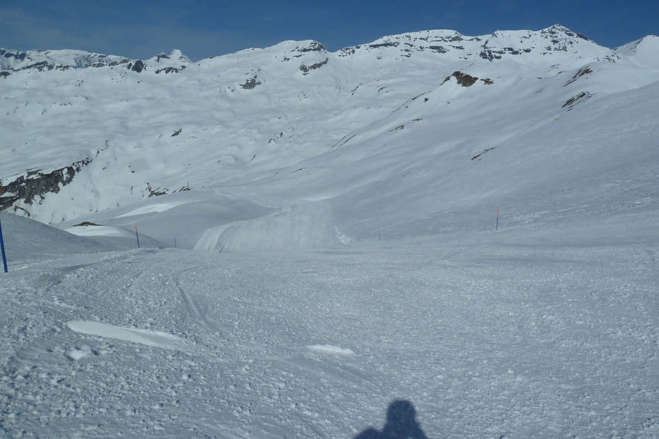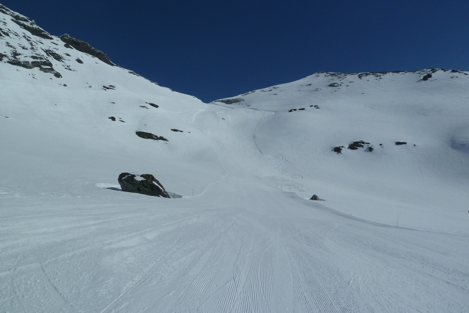 Zoom vom Vorab Gletscher zur Abfahrt 28 (Glarnerabfahrt)