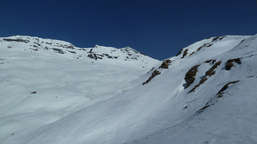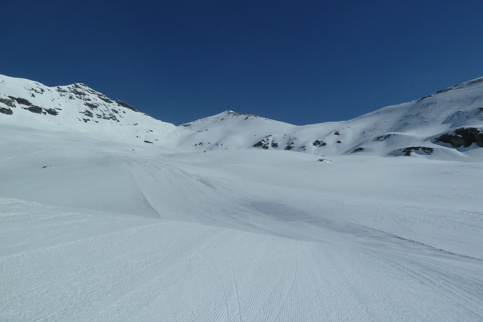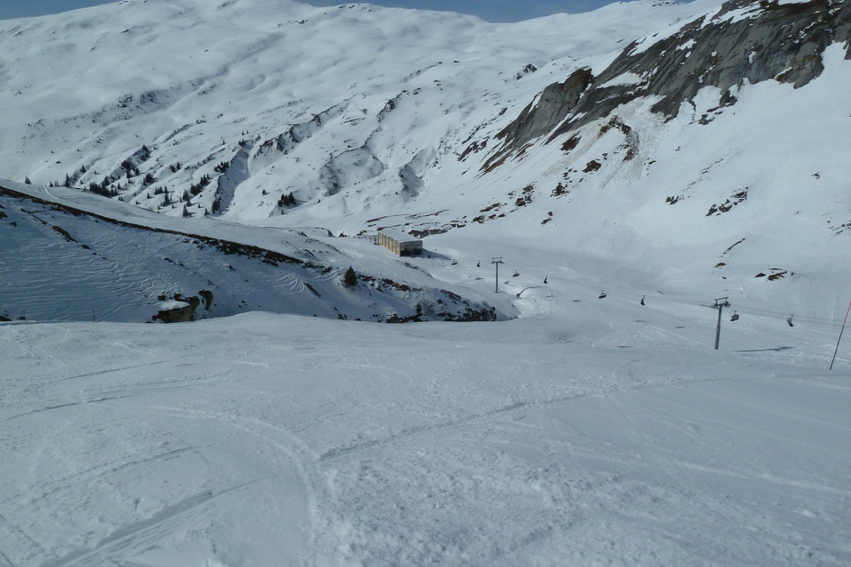 Blick Richtung Steilhang der schwarzen Abfahrt 35 (Sattelabfahrt)